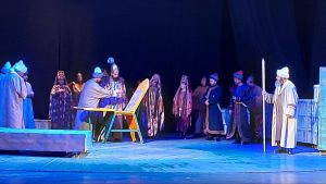“Oqsaroy” spektaklida tamaddunning Sohibqironi, adolat va jasoratning timsoli, buyuk davlatchilikning Sharqdagi oqil sarkori, mangu bitik – obidalarning bunyodkori bo‘lmish Amir Temurning suvrati va siyrati namoyon bo‘ladi. “Oqsaroy” Temur tuzgan buyuk davlatining ramzi sifatida bunyod etilar ekan, unga hayrihoxlik bilan qo‘yilgan har bir g‘isht oltin kabi qiymat topajagi va bu yo‘lda unga g‘ov bo‘lgan adlsizliklarga qarshi Adolat kuchi bilan zafar qozonilishi aks etirildi. Spektakl tomoshabinlar tomonidan katta qiziqish hamda olqishlar bilan qarshi olindi.