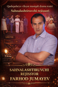 Qashqadaryo viloyat musiqali drama teatri sahnalashtiruvchi   rejissori Jumaev Farhod Suyunovich